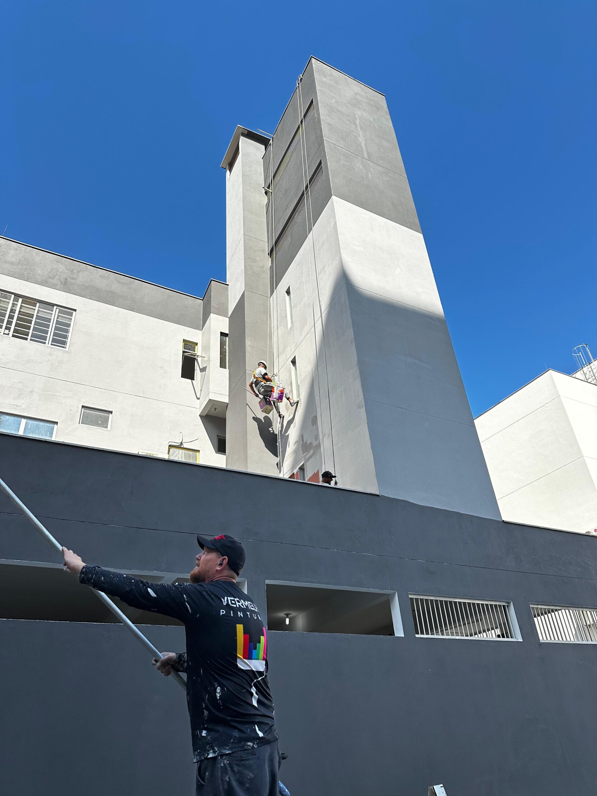 Somos apaixonados pelo trabalho em altura na pintura de prédios em condomínios residenciais, e este é o segredo principal do nosso sucesso.